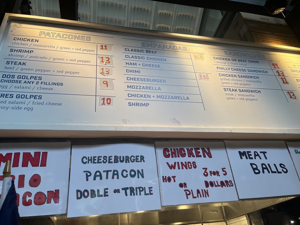The Platos are also noteworthy, featuring options like tender grilled chicken or steak, accompanied by vibrant peppers, onions, and either sweet plantains or tostones—all priced from $11 to $13.